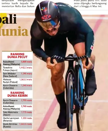 Lumba Basikal Secara Berpasukan Dan Faedahnya Info Cycling Selangor. Baru-baru ini beliau telah membanggakan negara setelah dinobatkan sebagai jaguh nombor 1 dunia dalam acara kegemarannya iaitu acara Keirin. 22012020 Jaguh lumba basikal trek negara iaitu Azizulhasni Awang pada hari ini telah membanggakan Malaysia sekali lagi apabila menduduki tempat pertama dalam ranking terkini bagi acara Men Elite Keirin.